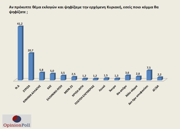 Δημοσκόπηση Opinion Poll: Στις 20,5 μονάδες η διαφορά ΝΔ-ΣΥΡΙΖΑ, Ικανοποίηση για Μητσοτάκη