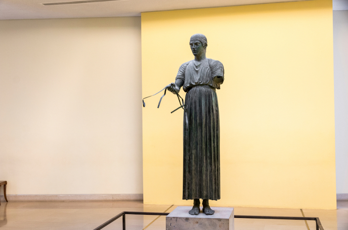 Μία τσαλακωμένη χρυσή φιάλη κονιάκ -Ο καλλιτέχνης εμπνεύστηκε από τον Ηνίοχο στους Δελφούς
