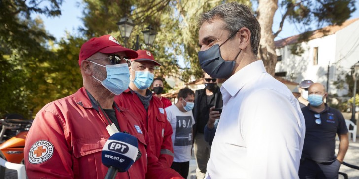 Ο Κυριάκος Μητσοτάκης στη Σάμο μετά τον φονικό σεισμό © INTIME NEWS