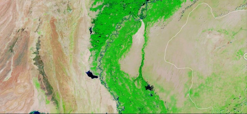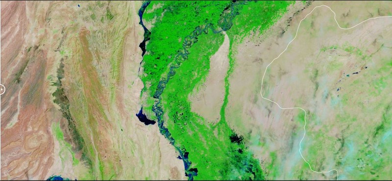 Πλημμύρες από τους μουσώνες στο Πακιστάν τον Σεπτέμβριο του 2019 (πάνω) και τον ίδιο μήνα του 2020 (κάτω) / Φωτογραφίες: NASA