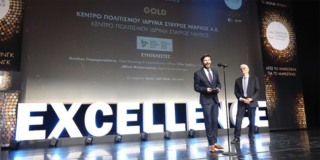 Το κορυφαίο βραβείο μάρκετινγκ που δίνεται κάθε δύο χρόνια πήρε η ομάδα του Κέντρου Πολιτισμού Ιδρυμα Σταύρος Νιάρχος, ενώ κέρδισε και το χρυσό βραβείο νέου brand στην τελετή του Ελληνικού Ινστιτούτου Μάρκετινγκ.